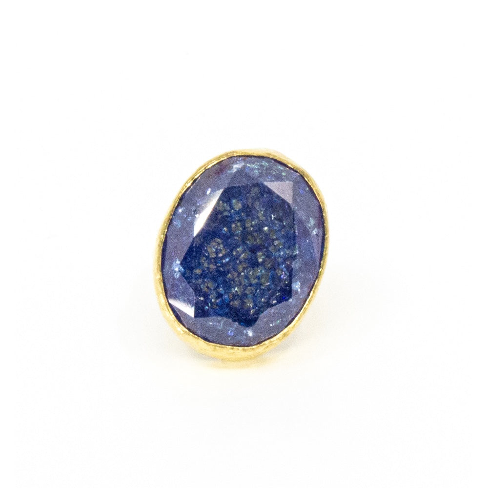 Justerbar ring i mässing som förgyllts med 24k guld. Stenen är en sammansmältning av zirkonia och glittrar fint och lyxigt. Stenen är 24mm