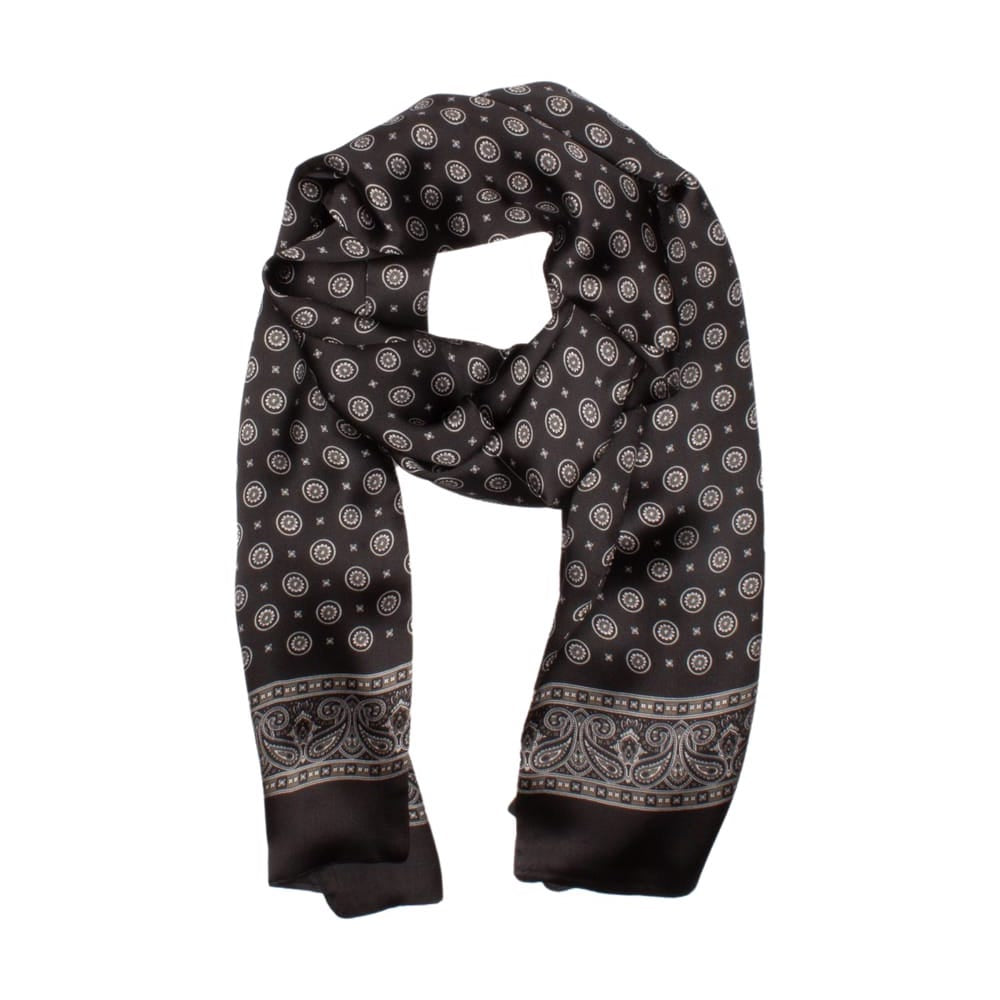 Mönstrad sidensjal för män. Storlek: 150x28cm. Material: 100% siden