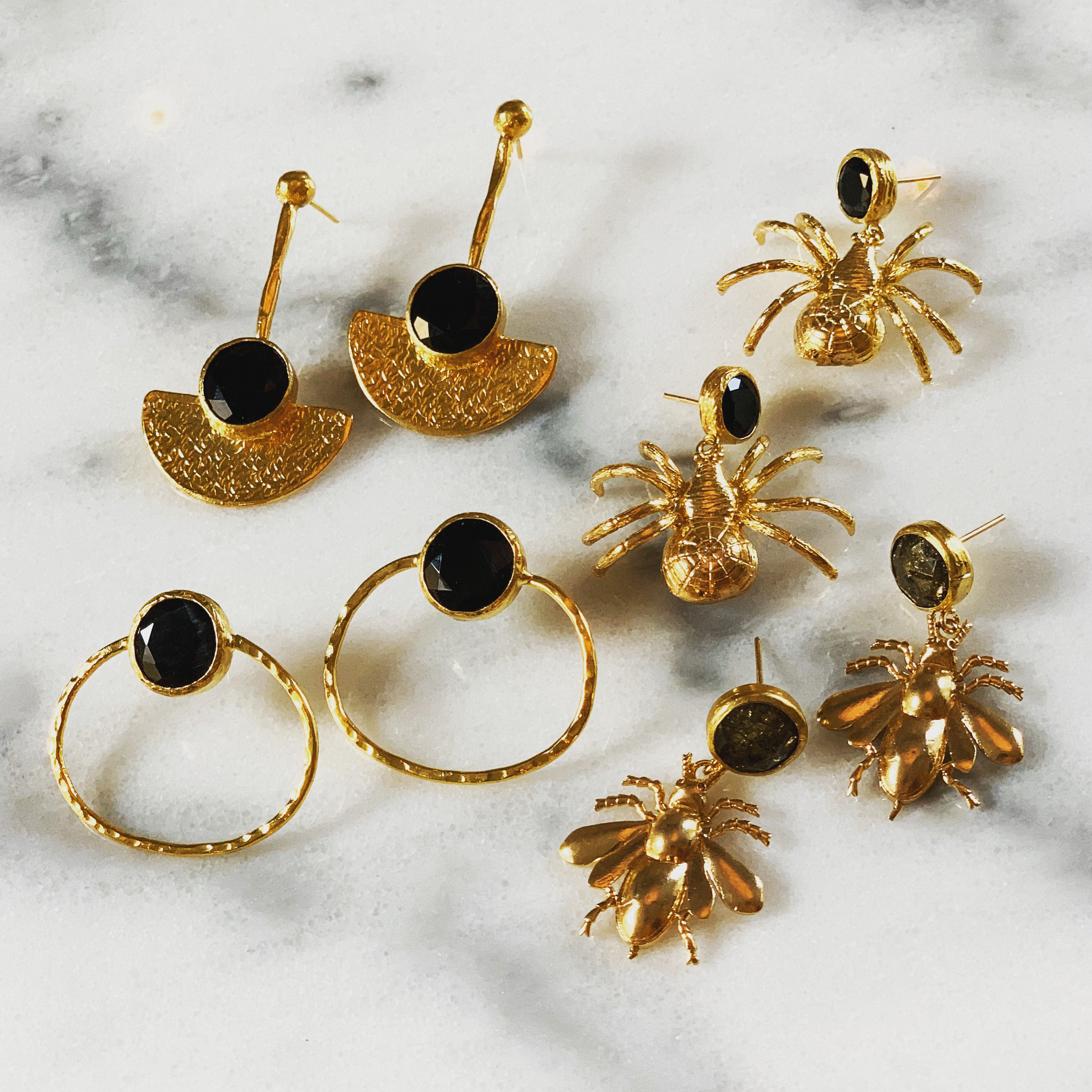 Handmade ring with a large crystal (20x25mm) of faceted synthetic cats eye - a unique glass technique. The metal is made of brass and gilded with 24 carat gold. The ring is adjustable and fits most people.