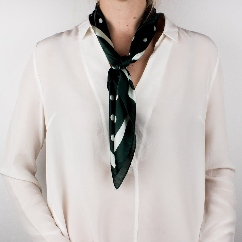 Dotted shawl in 100% Polyester with a silk feel. Size: 70x70cm